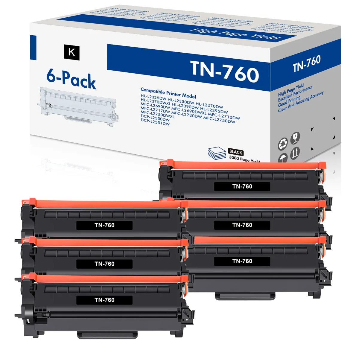 Sharp, reliable black text starts with the right toner — and the Brother TN760 and TN730 cartridges deliver exactly that for a wide range of Brother laser printers. Engineered to work seamlessly with models like the MFC-L2750DW, DCP-L2550DW, and HL-L2370DW XL, these cartridges produce clean, consistent output whether you’re printing everyday documents, reports, or high-volume office jobs. Available in multiple pack sizes — from a single TN730 rated at 1,200 pages to high-yield TN760 options reaching up to 6,000 pages per cartridge — you can choose the quantity that fits your printing habits and budget. Stocking up with a multi-pack means fewer reorder interruptions and real savings on your Brother printer supplies. Each cartridge is backed by a 1-year satisfaction guarantee, so you can print with confidence.