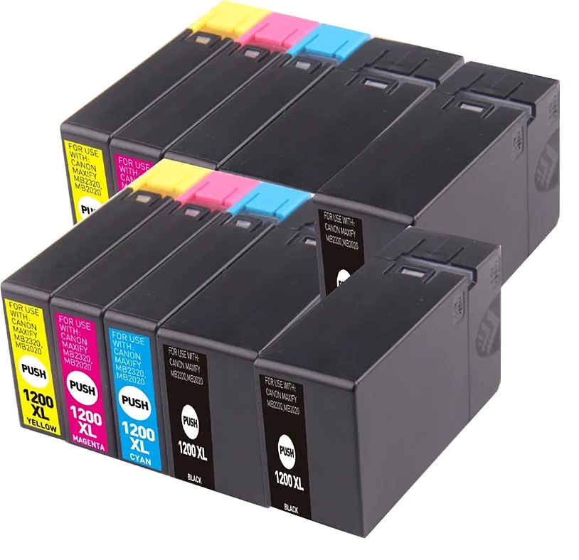 Designed for Canon MAXIFY printers, this 10-pack of PGI-1200 XL high-yield ink cartridges keeps your MB2020, MB2320, and MB2720 running without frequent trips to reorder supplies. Each cartridge is engineered to slot directly into your printer with no adjustments needed, delivering consistent, reliable output across everyday documents and business printing tasks. With a 1,200-page rated yield per cartridge, this set gives you serious printing capacity before you need to restock. Stocking up with a 10-pack means fewer interruptions and more value per page compared to buying cartridges one at a time. Backed by a 1-year satisfaction guarantee, these PGI-1200 XL cartridges are a practical choice for MAXIFY users who print regularly and want to keep costs in check.