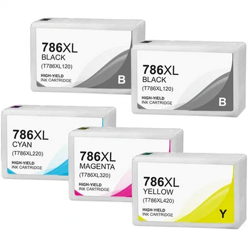 Get exceptional value with this Epson 786XL high-yield ink cartridge 5-pack from BatteriesAndInk.com. This complete set includes two black cartridges and one each of cyan, magenta, and yellow, providing everything you need for crisp documents and vibrant color prints. Engineered to match OEM quality while saving you significant money, these remanufactured cartridges deliver reliable performance in WorkForce Pro printers including the WF-4630, WF-4640, and WF-5620 models. Each cartridge is thoroughly tested to ensure consistent ink flow and print quality that matches genuine Epson standards. With our satisfaction guarantee, you can confidently make the switch to affordable printing without compromising on results.