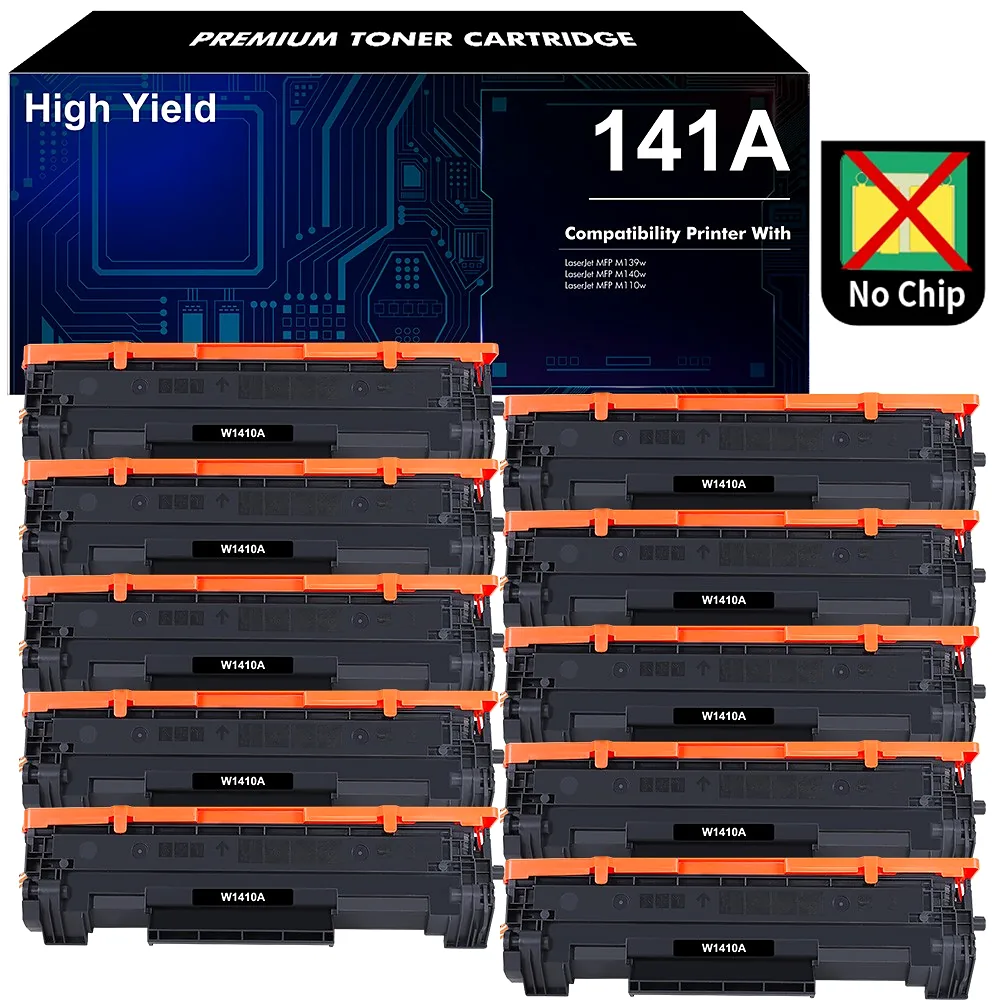 Designed for HP LaserJet printers that don’t require chip authentication, this HP 141A (W1410A) black toner cartridge delivers up to 1,000 pages per cartridge at 5% coverage — making it a practical choice for home offices and light business use. It fits a range of HP LaserJet models including the M110we, MFP M139w, and MFP M140w, among others. Please note this cartridge ships without a printer recognition chip. It is intended for printers that do not require chip authentication, or for users who plan to transfer the chip from a depleted cartridge. We recommend verifying your specific printer model before purchasing to ensure compatibility. Available in multiple pack options so you can stock up and reduce cost per page over time. Each cartridge is backed by a 1-year satisfaction guarantee.