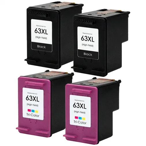 Save big on your printing needs with this HP 63XL 4-pack bundle from batteriesandink.com. This convenient set includes 2 black cartridges (480 pages each) and 2 tri-color cartridges (330 pages each), providing everything you need for crisp documents and vibrant photos. Our remanufactured cartridges deliver the same reliable performance as genuine HP cartridges while helping you save significantly on printing costs. Compatible with popular HP DeskJet models including the 1110, 2130, and 3630 series, these high-yield cartridges are backed by our satisfaction guarantee for worry-free printing.